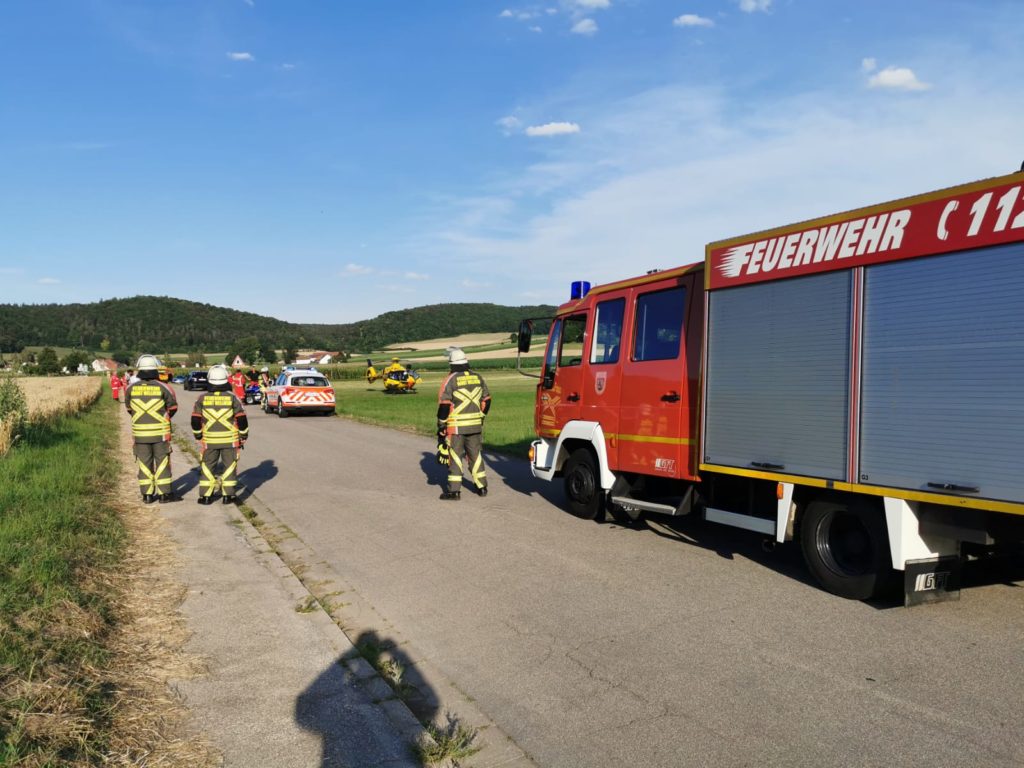 Wir übernahmen die Verkehrsabsicherung der Unfallstelle bis die Versorgung der verletzten Personen und die Unfallaufnahme durch die Polizei abgeschlossen war. Die beiden Verletzten wurden mit dem Rettungswagen bzw. dem Rettungshubschrauber in umliegende Krankenhäuser gebracht.