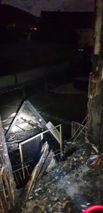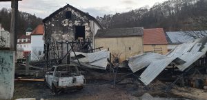 Die Flammen griffen auch auf das angrenzende Wohnhaus über, konnten jedoch schnell unter Kontrolle gebracht werden.