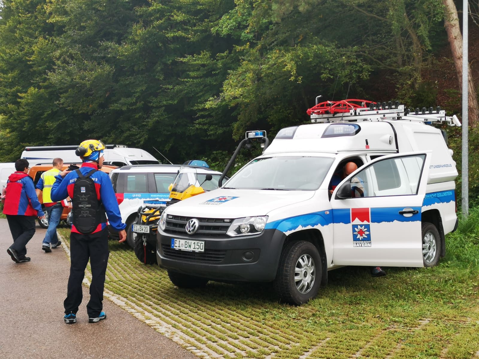 Nachdem eine weitere Suche durch den Polizeihubschrauber am Donnerstag Morgen ebenfalls kein Ergebnis brachte wurden wir wieder alarmiert. Insgesamt waren am Donnerstag 25 Suchhunde des ASB Ingolstadt und München, der Rettungshundestaffel Aschheim und Hochbrück, des BRK Augsburg und Kelheim, sowie der Johanniter Regensburg und der DLRG Augsburg im Einsatz. Ebenso waren ca. 160 Einsatzkräfte im Einsatz – eine Hundertschaft der Polizei, die Wehren Wellheim-Konstein, Gammersfeld, Hard und Biesenhard, die Wasserwacht Wellheim und weitere Kräfte des BRK Eichstätt. Ebenfalls vor Ort waren Kräfte der Bergwacht Dollnstein um mit geländegängigen Fahrzeugen schwer erreichbare Bereiche zu durchsuchen.
