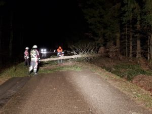Wir wurden zu einem Baum über der Fahrbahn Kreisstraße EI 5 Wellheim-Gammersfeld alarmiert. Anschließend blieben wir noch auf Bereitschaft im Gerätehaus und wurden auch kurz darauf telefonisch zu einem umgestürztem Baum in der Wittmeßstraße gerufen. Später kontrollierten wir noch mit einem Fahrzeug den Gemeindebereich auf weitere Sturmschäden und räumten noch einige größere Äste und ein Baustellenschild von der Fahrbahn. Nach 4 Stunden wurde die Bereitschaft aufgelöst, da sich der Sturm wieder abflaute.